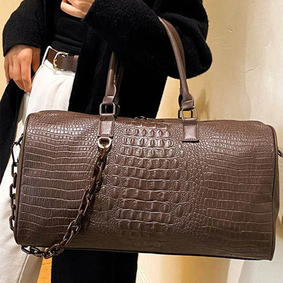 Weekend Travel Chocolate Faux Croco Leather Duffle Bag